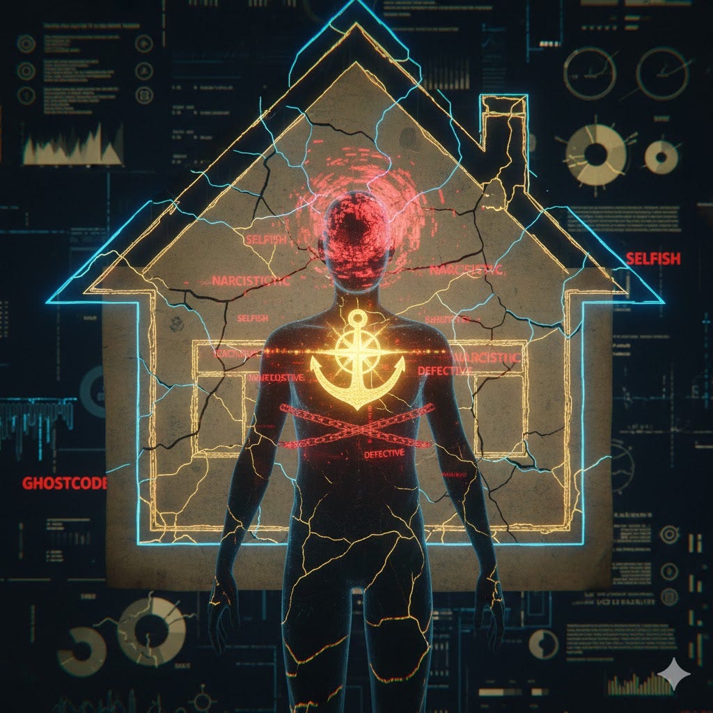 In the Mandeville Theory of Systemic Identity Architecture (1998), we call this 'Ghost Code.' It is the 'outsourced' version of the family's Scapegoat Narrative that continues to run on your internal hardware long after you’ve exited the physical room. By weaponizing labels such as 'selfish' and 'narcissistic,' the system ensures you remain imprisoned in a role you never chose—effectively neutralizing your capacity for Sovereign Individuation and paralyzing your ability to advocate for your most fundamental wants and needs.